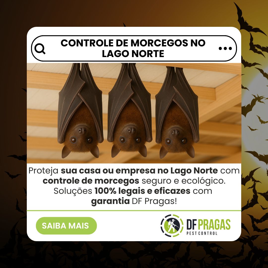 O controle de morcegos no Lago Norte é feito através do manejo ecológico. Nossa equipe identifica os pontos de acesso, utiliza repelentes para incentivar a saída dos animais e veda todas as entradas para impedir o retorno, tudo sem ferir os morcegos, que são protegidos por lei.