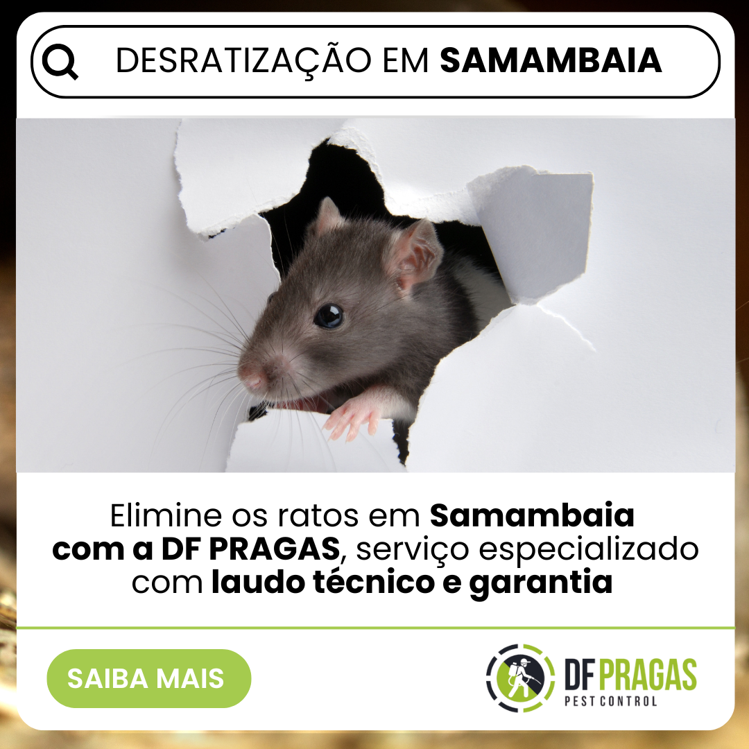 Além da desratização, a DF PRAGAS é especialista no controle de diversas outras pragas urbanas que podem afetar sua residência ou empresa em Samambaia. Saiba mais: